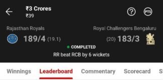 Winning screenshots RR vs RCB, (Rajasthan Royals vs Royal Challengers Bengaluru),...