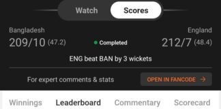 Winning screenshot, ENG VS BAN , Dream Team