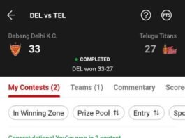 Winning screenshots DEL vs TEL (Dabang Delhi Vs Telugu Titans), Pro Kabaddi League 2024 Dream Team – Results