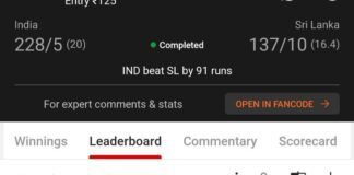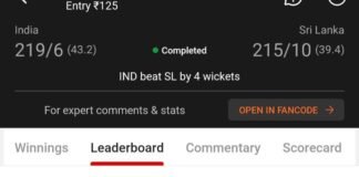 Winning screenshot, IND VS SL , Dream Team