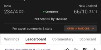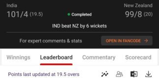 Winning screenshot, IND VS NZ , Dream Team
