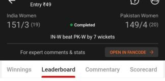 Winning screenshot, IN-W VS PK-W , Dream Team