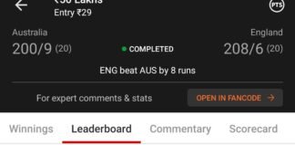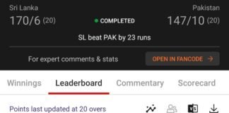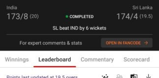 Winning screenshot, IND VS SL , Dream Team