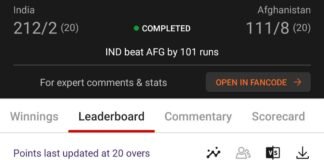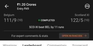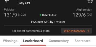 Winning screenshot, IND VS AFG , Dream Team
