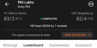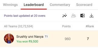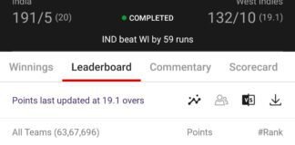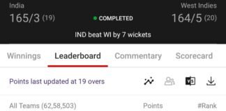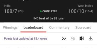 Winning screenshot, IND VS WI , Dream Team