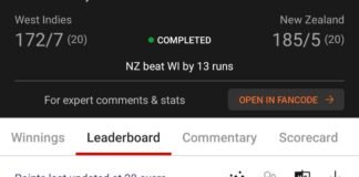 Winning screenshot, WI VS NZ , Dream Team