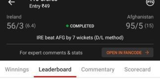 Winning screenshot, IRE VS AFG , Dream Team