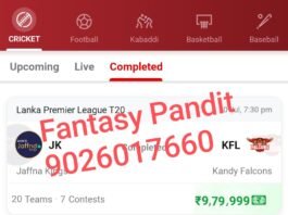 Winning screenshots JK vs KFL (Jaffna Kings vs Kandy Falcons) Qualifier 2 Match, Lanka Premier League, 2024 Dream Team – Results