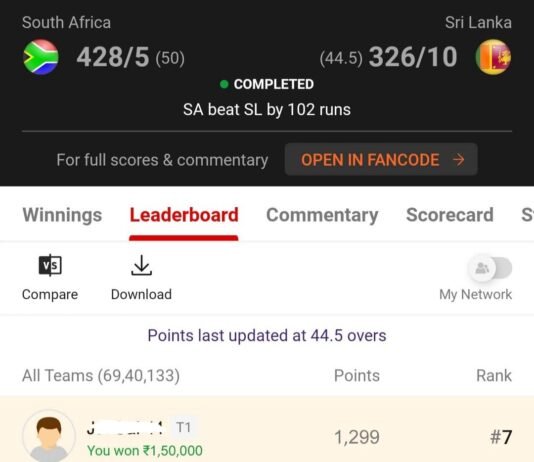 Winning screenshot, Miscellaneous, Dream 11 Pandit
