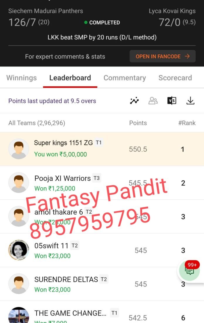 Winning screenshot, TNPL , Dream Team
