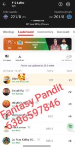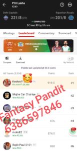 winning screenshot Winning screenshots DC vs RR (Delhi Capitals vs Rajasthan Royals), 56th Match Indian Premier League 2024 Dream Team – Results By Niel Patel - May 11, 2024 0 2128 FacebookTwitterPinterestWhatsApp