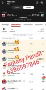 winning screenshotWinning screenshots ENG vs PAK (England vs Pakistan), 4th T20I Pakistan Tour Of England, 2024 Dream Team – ResultsBy Niel Patel - June 3, 202402638FacebookTwitterPinterestWhatsApp