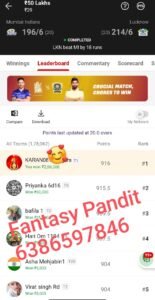 winning screenshot Winning screenshots MI vs LSG (Mumbai Indians vs Lucknow Super Giants), 67th Match Indian Premier League 2024 Dream Team – Results By Niel Patel - May 20, 2024 0 2185 FacebookTwitterPinterestWhatsApp